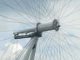 Weiter wieder mit dem offenen Rundfahrbus durch das Bankenviertel, wo wir uns am Oberdeck bald bis ganz nach vorne vorgearbeitet hatten. An Nelson und dem Parlament vorbei – Big Ben heißt die Glocke, nicht der Clock Tower – über die Themse mit Blick auf das Riesenrad (»London Eye«), das ich noch nicht gekannt hatte. Eine tolle Fahrradkonstruktion, mit einer täuschend echten Radnabe und als Speichen Seilen.